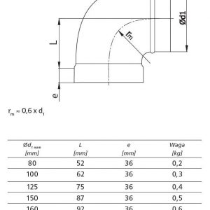 Kolano tłoczone, krótkie, mufa-nypel fi 160 mm, 90st.